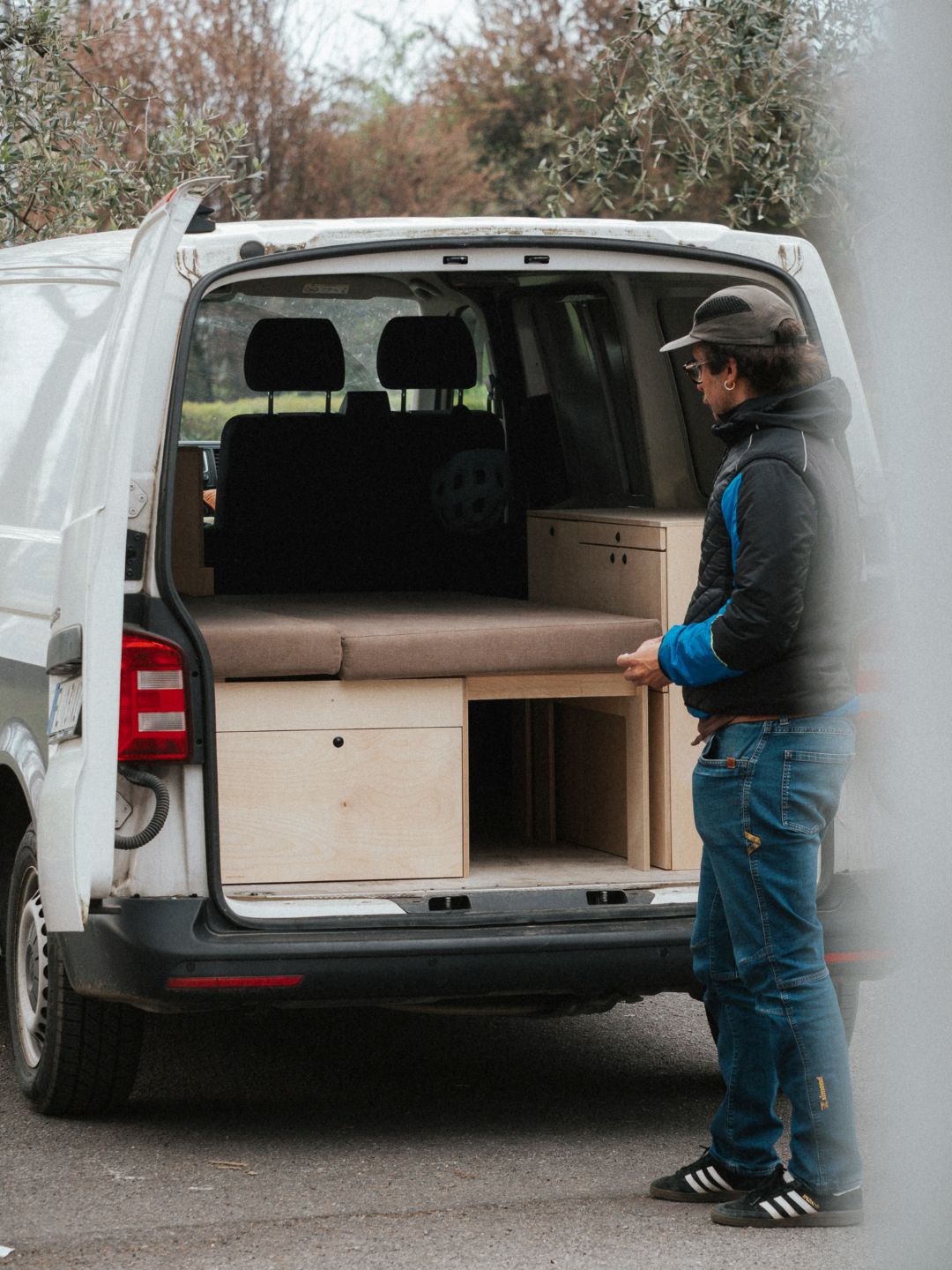 Kit camperizzazione van modulare per trasformare il tuo furgone in un van senza modifiche permanenti.